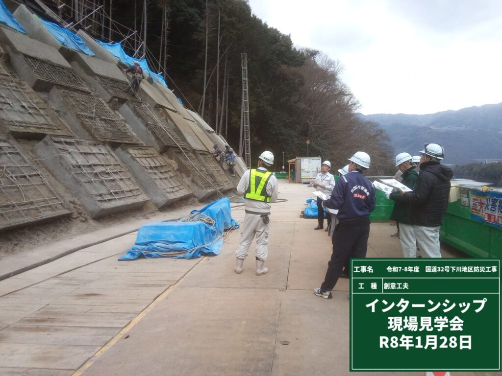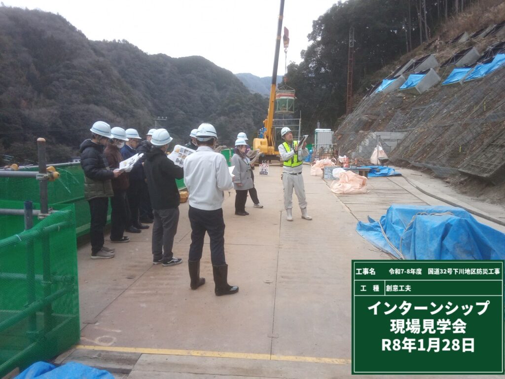 弊社が施工させて頂いております国道32号下川地区防災工事の現場において、徳島大学の学生を対象としたインターンシップの受け入れを行いました。