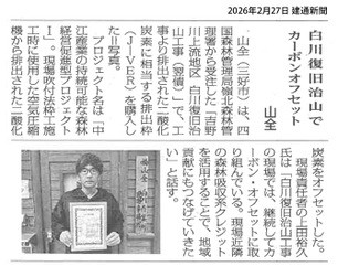 白川作業所(徳島県三好市山城町白川)において、環境対策の一環でCO2カーボン・オフセットを実施しました。